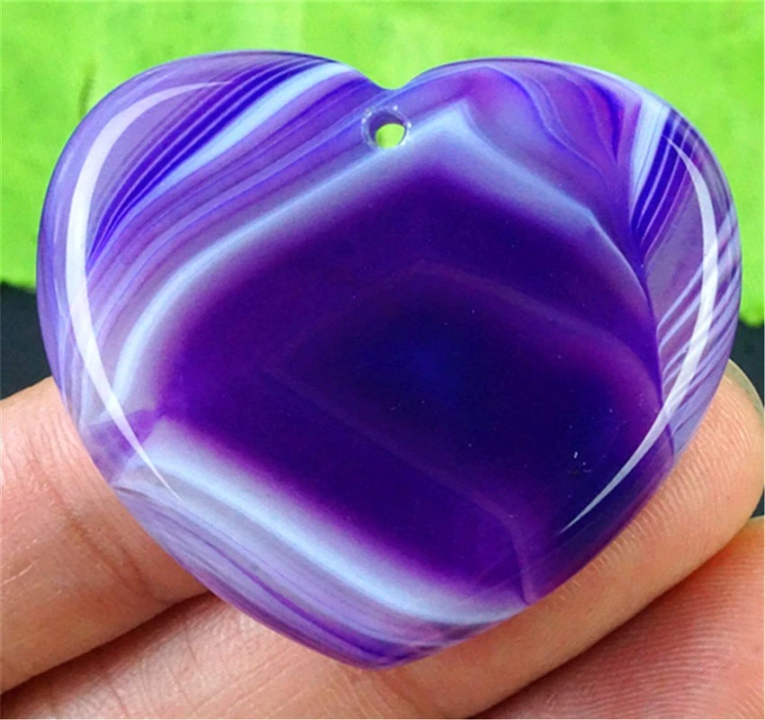 WGV53131 38x34x7mm Purple/white Stripes Agate Heart Pendant Bead