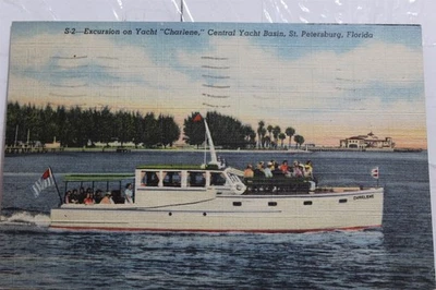 Florida FL St Petersburg Central Yacht Basin Charlene Excursion Postcard Old PC