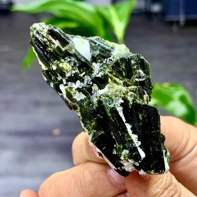 82G Natural green tourmaline quartz crystal cluster mineral specimen