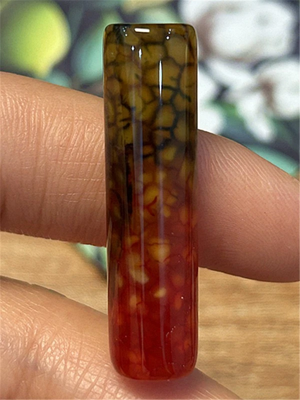 KU58337 37x9mm Colorful Fire Dragon Veins Agate Cylinder Pendant Bead
