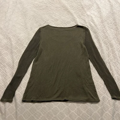 Christopher & Banks Olive Green Mesh Knit Pullover Sweater Long Sleeve S
