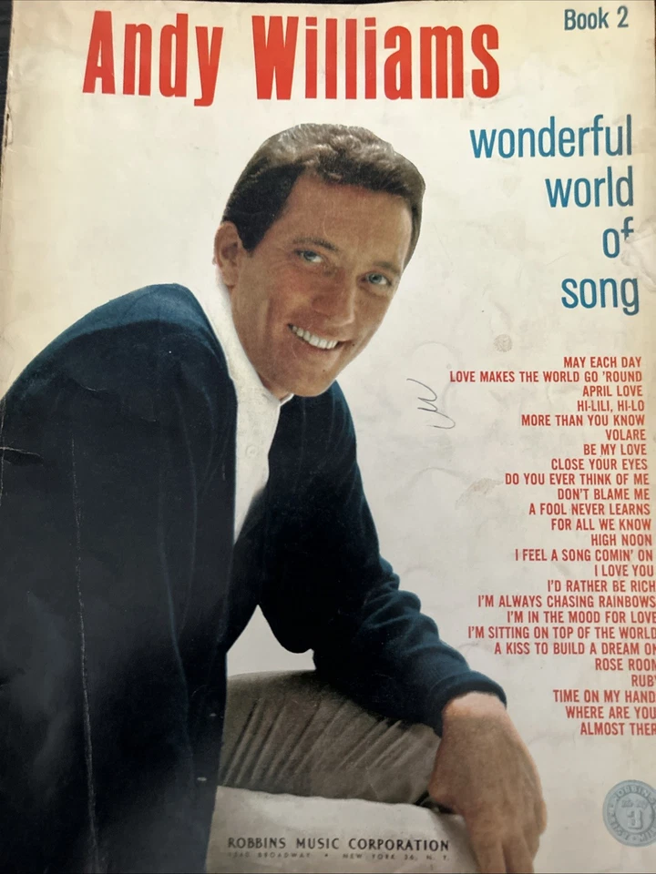 Andy Williams Book 2 Wonderful World of Song Robbins Music Guitar Chords 1965