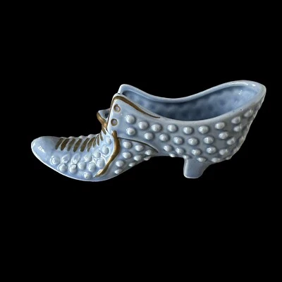 Vintage Porcelain Slipper Shoe Art Blue Hobnail