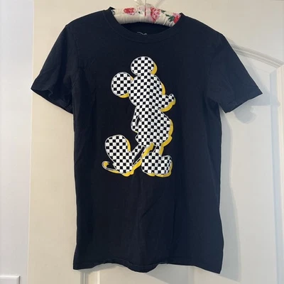 Disney Mickey Mouse Shirt Adult Large Black Short Sleeve Checkered Shirt NWOT