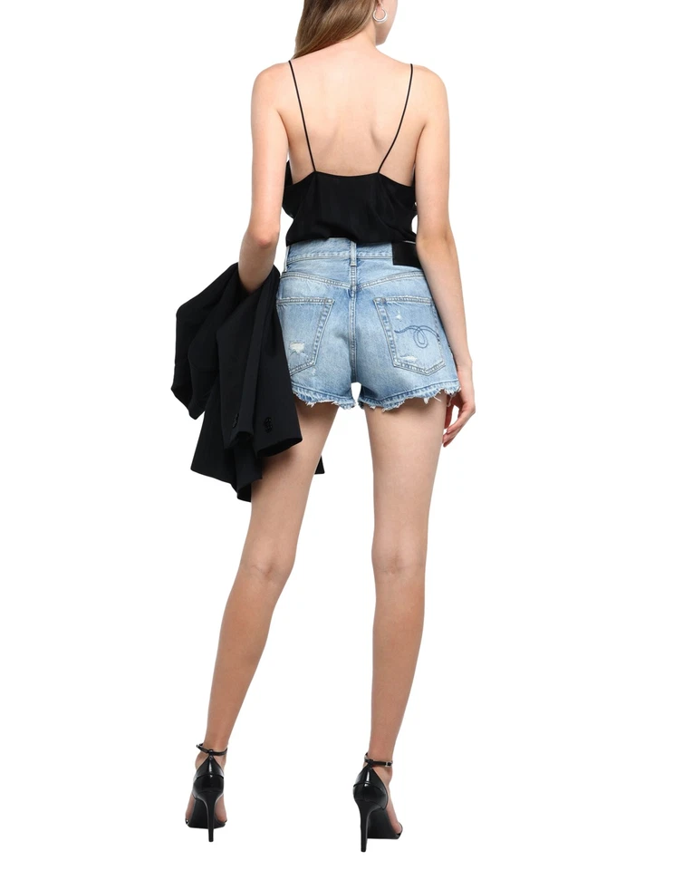 RRP€494 R13 Denim Shorts W25 Blue Distressed High Waist Made in Italy