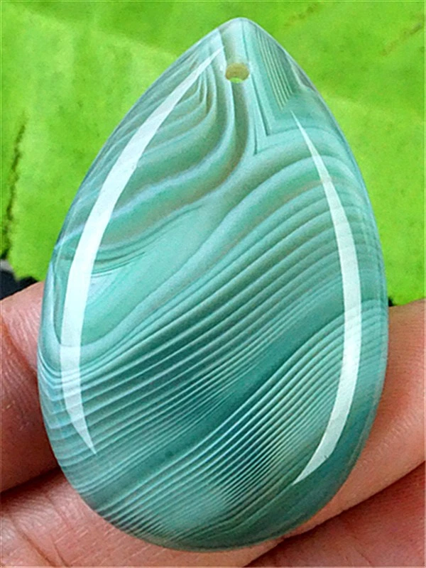 WGV48829 47x30x6mm Green/white Stripes Agate Teardrop Pendant Bead