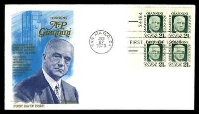 Mayfairstamps US FDC 1973 Amadeo P Giannini Block First Day Cover aax_35551