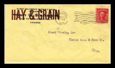DR JIM STAMPS US COVER HAY & GRAIN CHICAGO BACK ILLUSTRATED ADVERTISING 1905