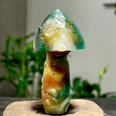 35G Top natural Gobi agate eye agate/stone carved mushroom Madagascar