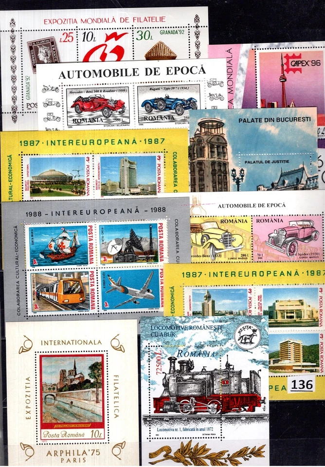 PU 10X ROMANIA - MNH - SPORTS - AUTO RACING - TRAINS - LOCOMOTIVES - SPACE