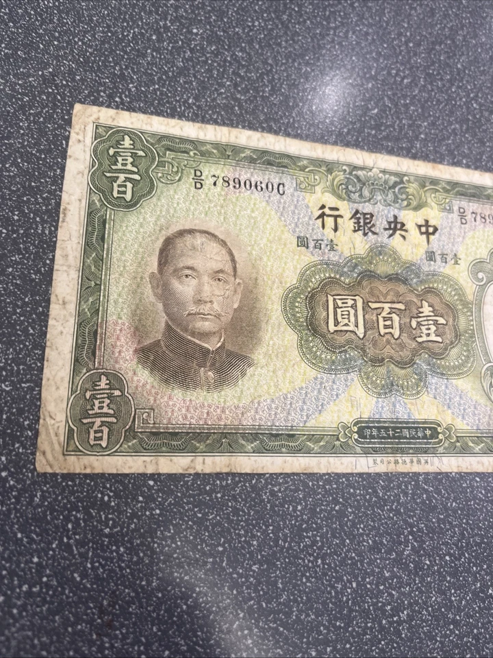 CHINA Central Bank of China 1936 100 Yuan