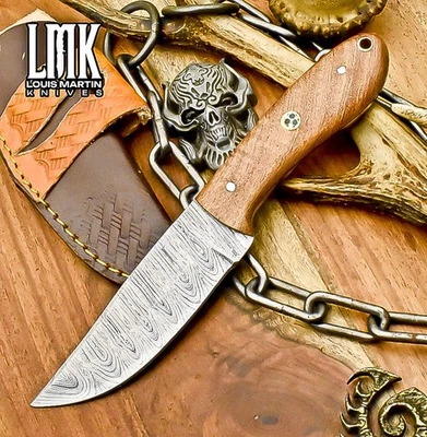 LMK Hand Forged Handmade Skinner Knife Twist Damascus Olive Wood Tactical Unique