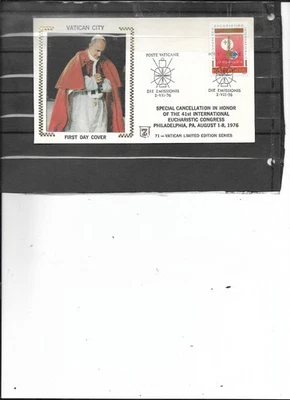 1976 Vatican 41st Int'l Eucharistic Congress, FDC w/ (SC# 592) Zaso Cachet