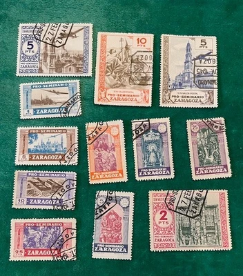 (12) Vintage Stamps from Zaragoza - issued 1940-1950s - see pictures