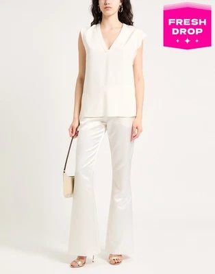 RRP€755 ETRO Silk Crepe Top Size L Short Sleeves V-Neck Made in Italy