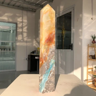 809g Natural Amazonite Crystal Quartz Obelisk Wand Point Mineral Reiki AK93
