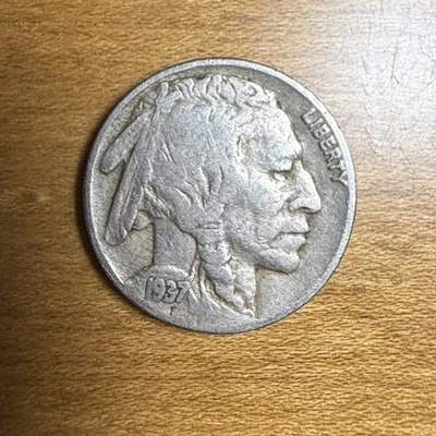 Buffalo Nickel 5 Cent Coin 1937 Great Circulated Condition No Mint Mark!