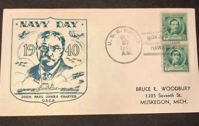 US Navy postal cancelation stamp U.S.S RELIEF Navy Day Oct 27 th 1940 Muskegon