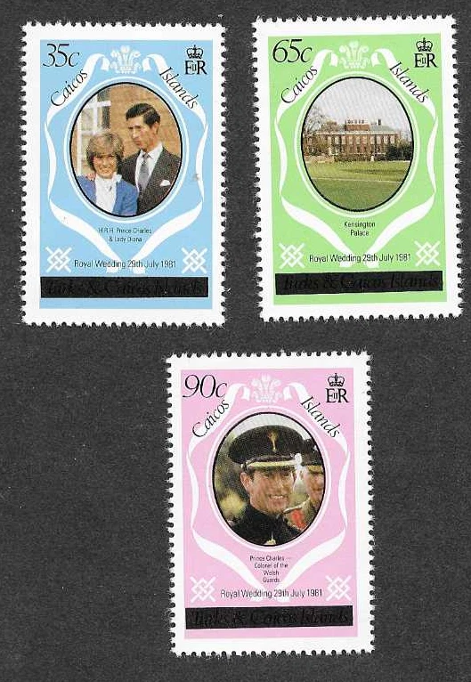 MNH Set 3 Stamps 1981 Caicos Islands Royal Wedding Charles & Diana