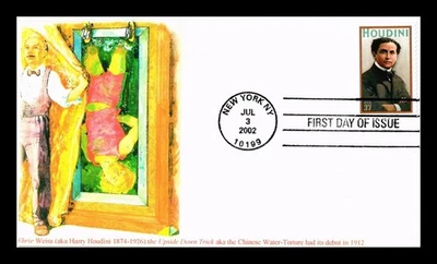 HARRY HOUDINI MAGICIAN FIRST DAY ISSUE UPSIDE DOWN TRICK US COVER