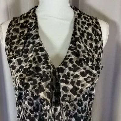Ann Taylor womens 4 animal print blouse sleeveless ruffle v-neck satin