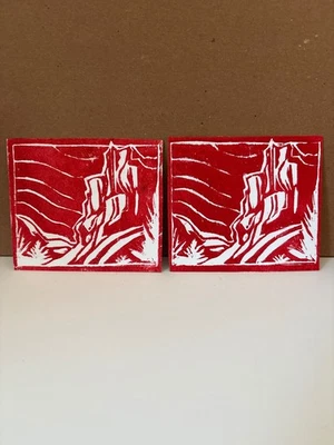 Two ACEOs, inked linoleum prints, original print, by sweetrye