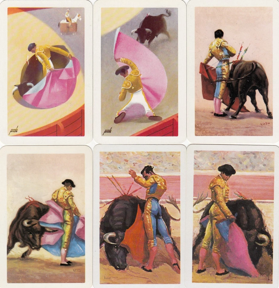 BULL FIGHTING -- 6 -- single vintage playing cards