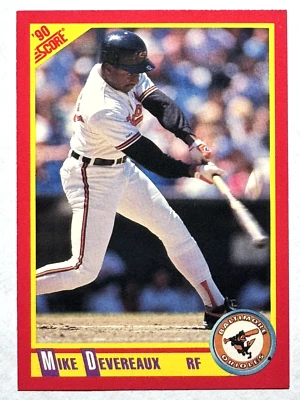 MIKE DEVEREAUX Baltimore Orioles, Dodgers, Rangers 1990 Score Baseball Card #232