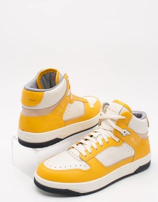 RRP€650 SANTONI Leather Sneakers US9 UK8 EU43 Yellow Perforated Made in Italy