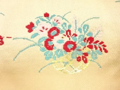 10113# JAPANESE KIMONO / ANTIQUE NAGOYA OBI / SILK / WOVEN FLOWER BASKET