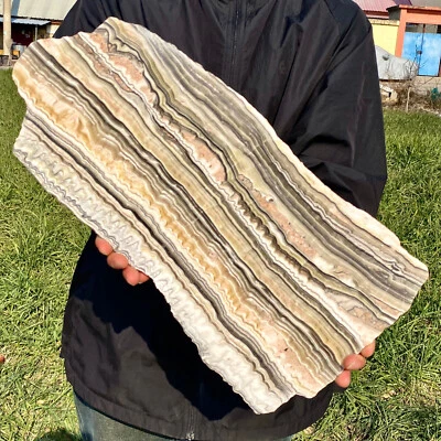 5.73LB Large Natural Banding Zebra Calcite Polished Slab Crystal Reiki Healing