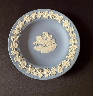Wedgwood 4.5" Plate Trinket Dish Aurora Chariot Blue Jasperware 1950s England