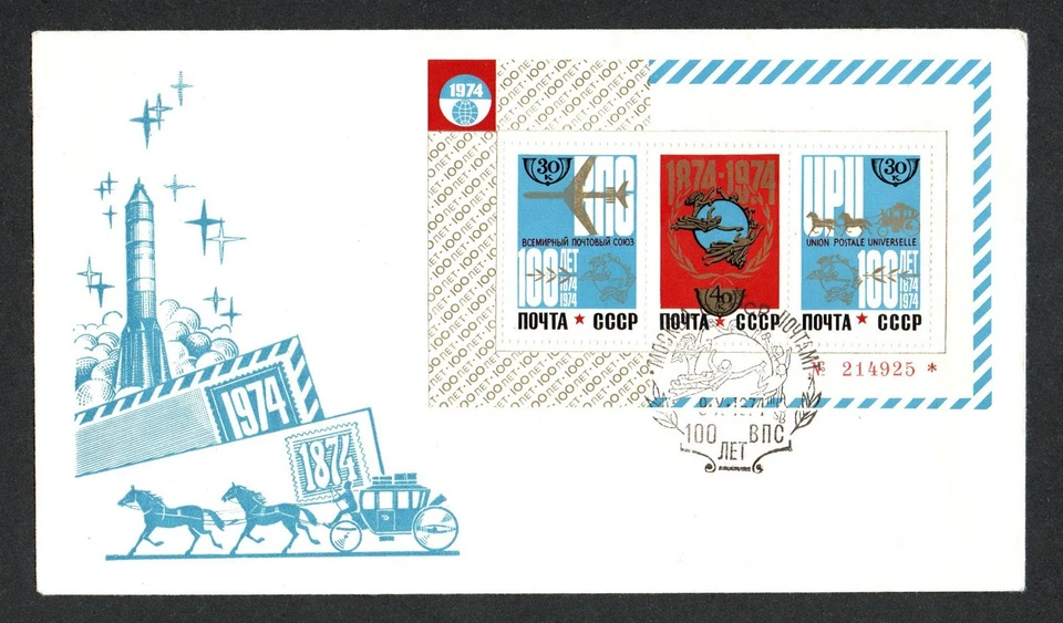 USSR UPU Russia 1970s cover special cancelation FDC plane rocket horse block SS