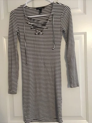 Forever 21 Small Brown Striped Ribbed Bodycon Mini Dress Long Sleeve Women’s