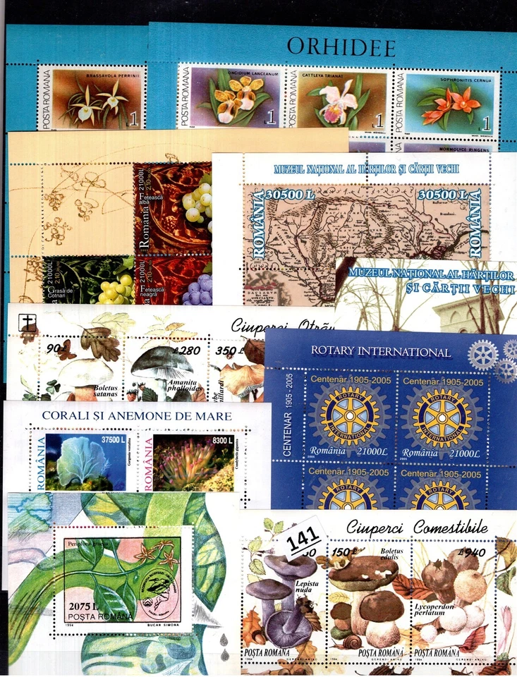 PU 10X ROMANIA - MNH - ROTARY INTERNATIONAL - ORCHIDS - MUSHROOMS - MARINE LIFE