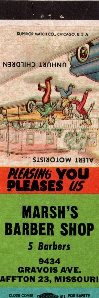 Marsh's Barber Shop Shop Matchcover Affton Missouri