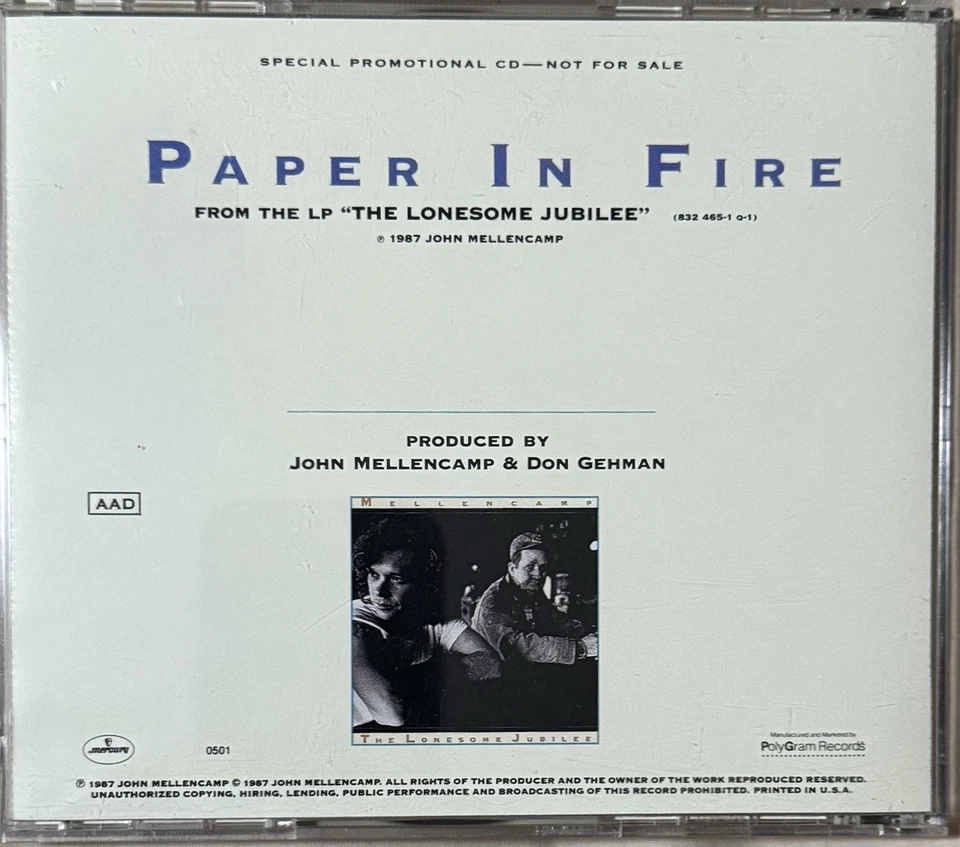 John Cougar Mellencamp – Paper In Fire PROMO CD Single 1987