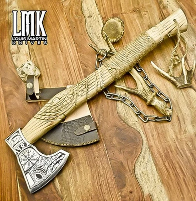 LMK Custom Hand Forged D2 Tool Steel Felling Axe Knife Ash Wood Simple Axe