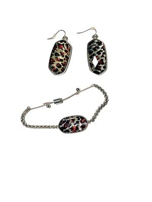 Costume Jewelry Silver Black Animal Print Earring and Bracelet Accessory Set