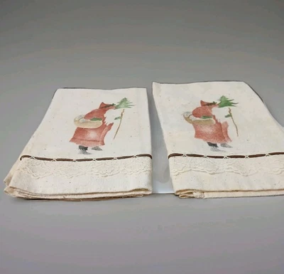 Father Christmas flour sack hand towels with lace