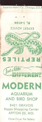 Modern Aquarium and Bird Shop Matchcover Afftom Missouri