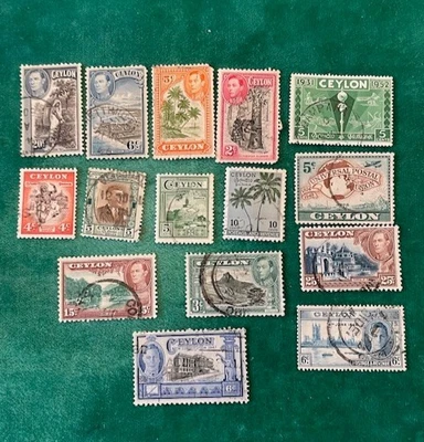 (15) Vintage Stamps from Ceylon - issued 1940-1950s - see pictures