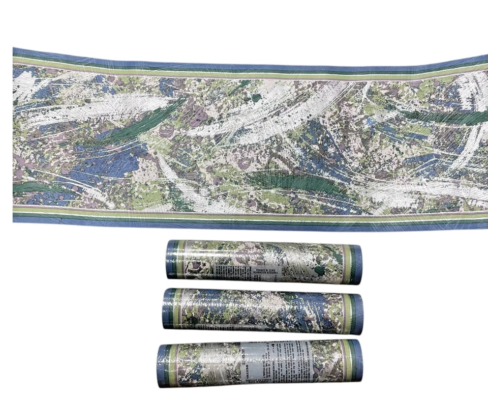 Lot of 3 Vintage Wallpaper Border Rolls Abstract Textured Blue Green White New