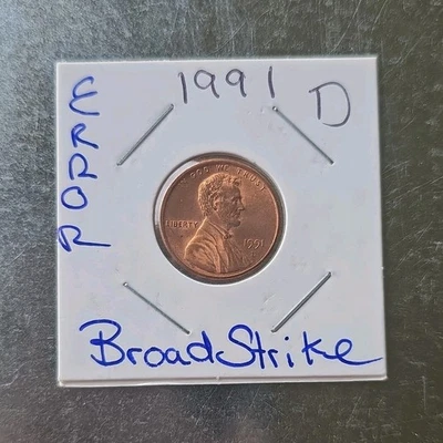 1991-D Lincoln Memorial Penny Broadstrike Error Uncirculated RD Copper