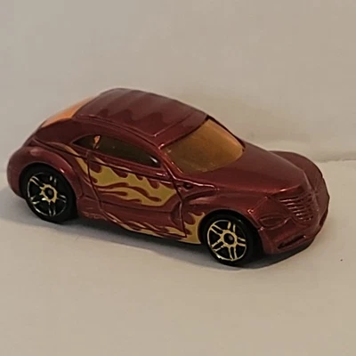 2012 HOT WHEELS CHRYSLER PRONTO RED 1:64 DIECAST 2 5/8" CAR WITH YELLOW FLAMES