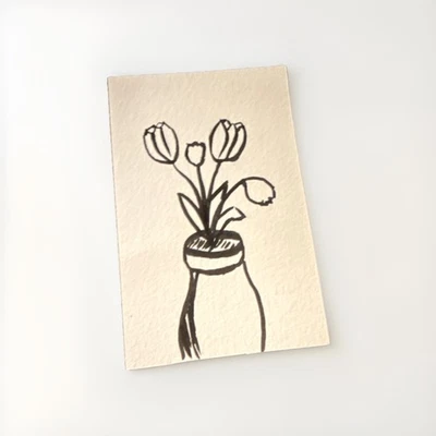 Miniature Original Ink Drawing on Paper Flowers in Vase Art Small AEOC