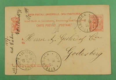 DR WHO 1887 LUXEMBOURG POSTAL CARD ETELBRUCK TO GODESBERG R27572