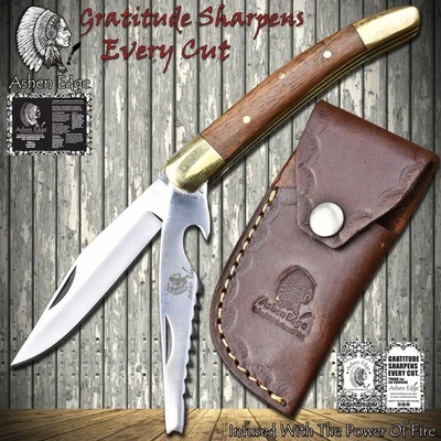 Ashen Edge AUS-8 Steel Dual Blade Folding Knife Walnut Wood