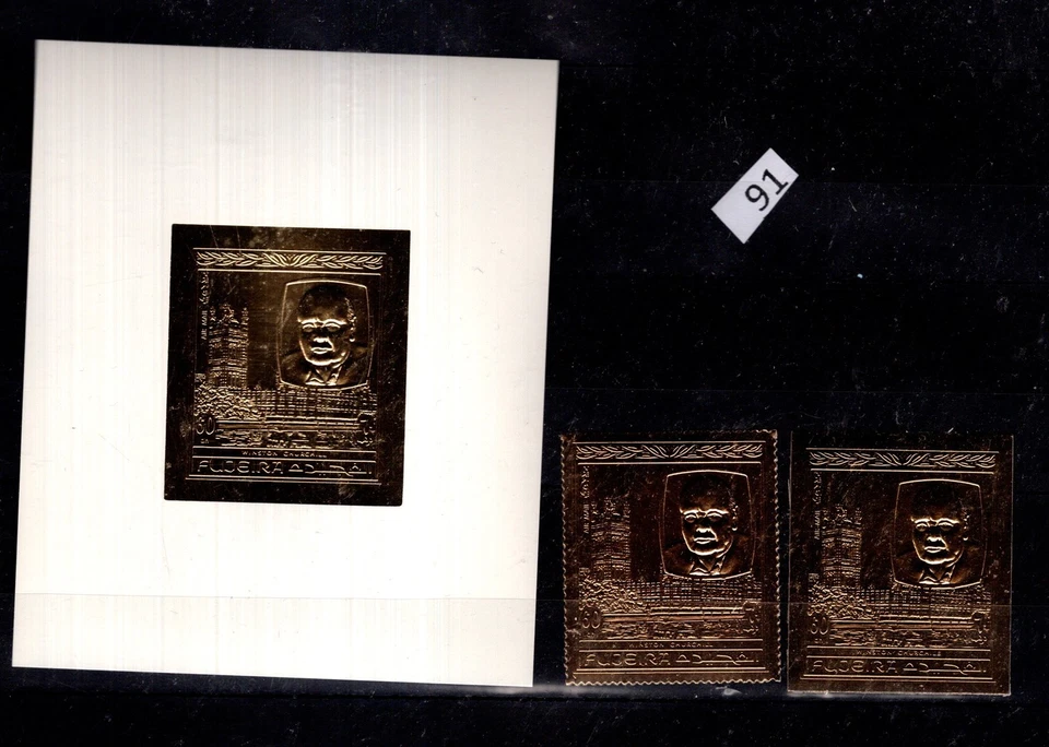 PT FUJEIRA - MNH - GOLD STAMPS - PERF + IMPERF - W.CHURCHILL
