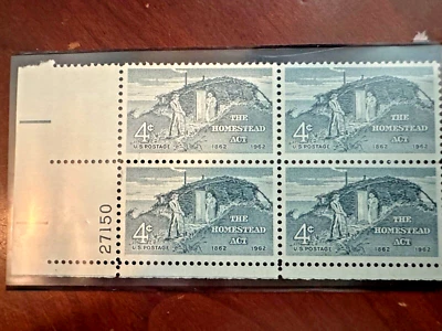 US #1061 Kansas Territory, Plate Block of 4, MNH Stamps